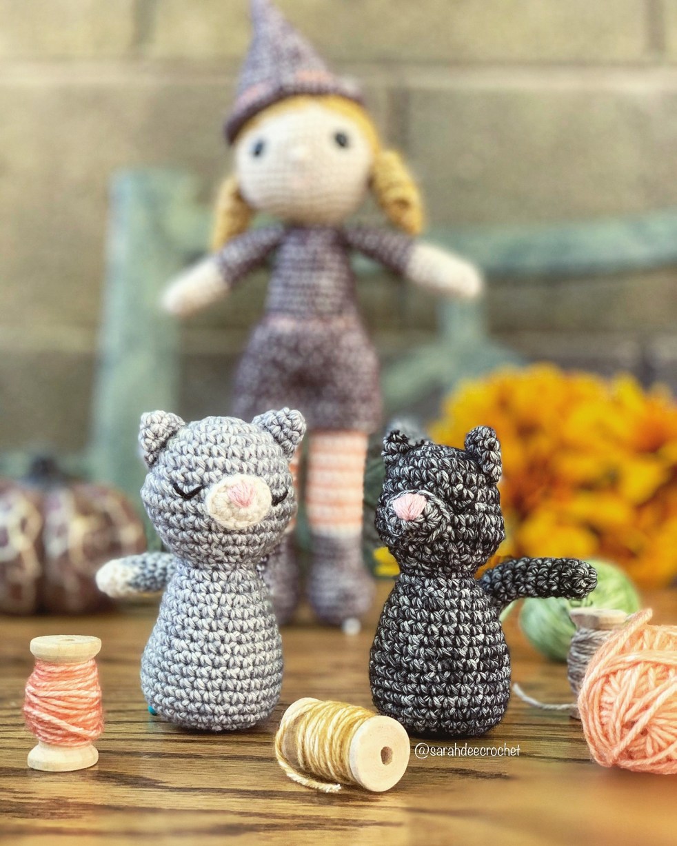 Abbreviations Rnd - round chX - chain X amount of stitches MR - magic adjustable ring (If you need more explanation, there are a ton of free videos available on YouTube) st(s) - stitch(es) sl st - slip stitch sp - space sc - single crochet inc - 2 sc in same stitch dec -… Continue reading Punkin the Mini Kitty