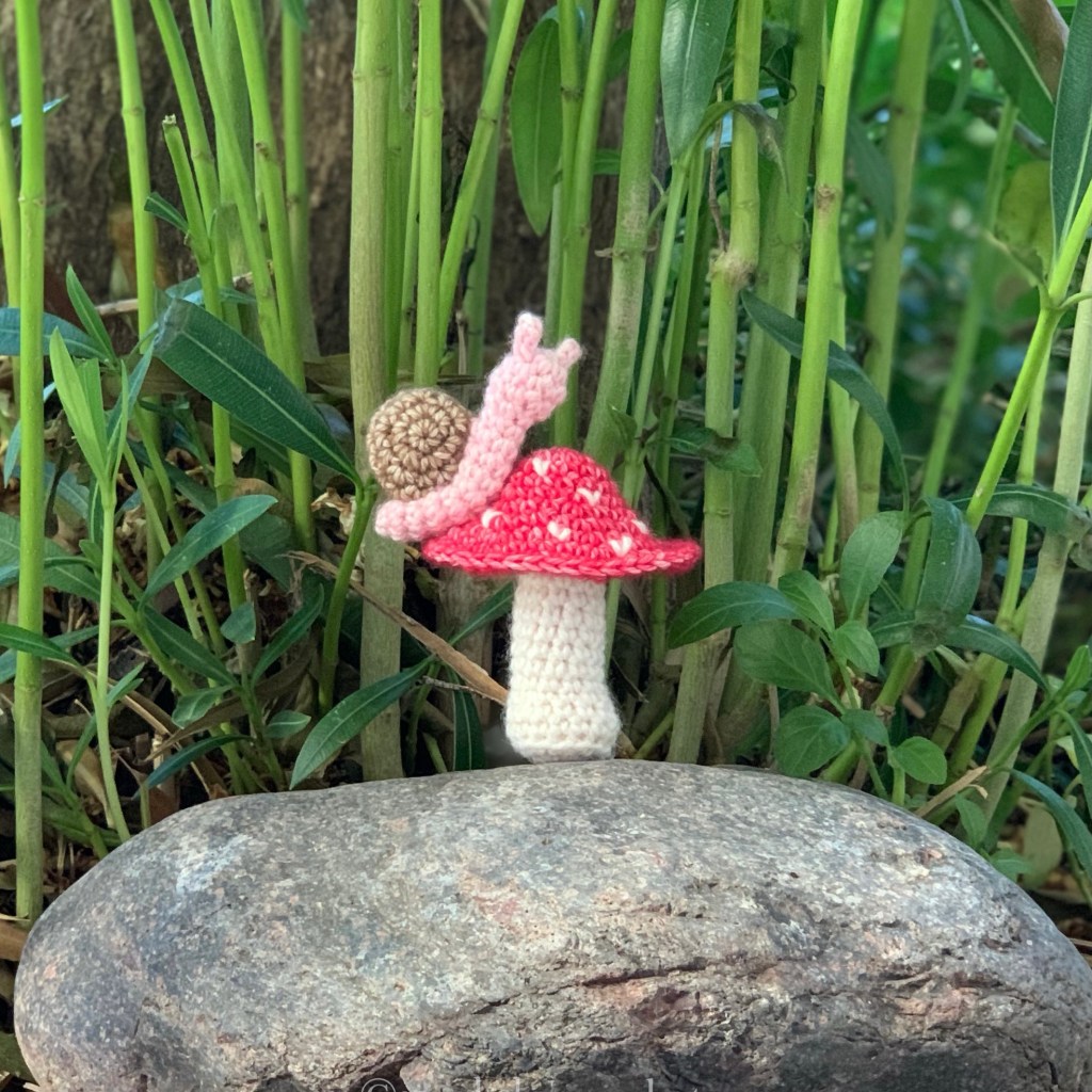 The Stonewashed XL yarn that I am using is just like using a worsted weight yarn. If you have a favorite weight 4 yarn, this will do just fine! If you want the mushroom and snail to be smaller like I have made, I would stick with using a sport/DK weight yarn and the hooks that I have recommended in the patterns. If you choose these types of yarns, the amount of yarn used should be approximately the same as listed in the pattern as well. Of course these weights can change slightly depending on tension.