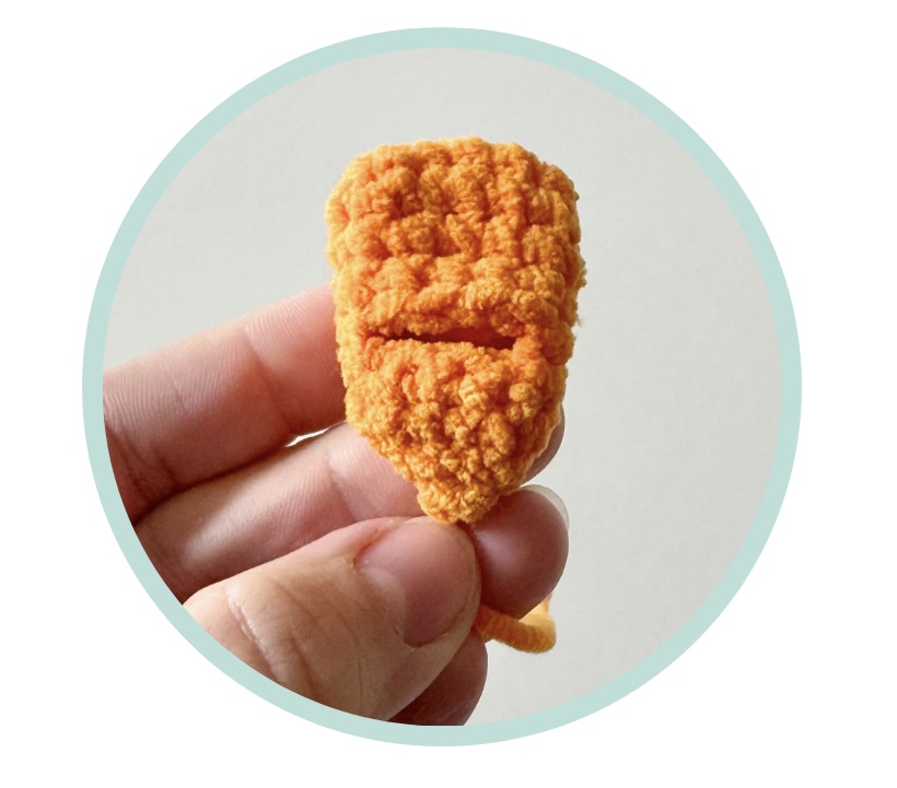 Sl st into the next st to FO. Weave your tail through FLO of the remaining 6 stitches, pull to close and hide the ends inside of the body.
