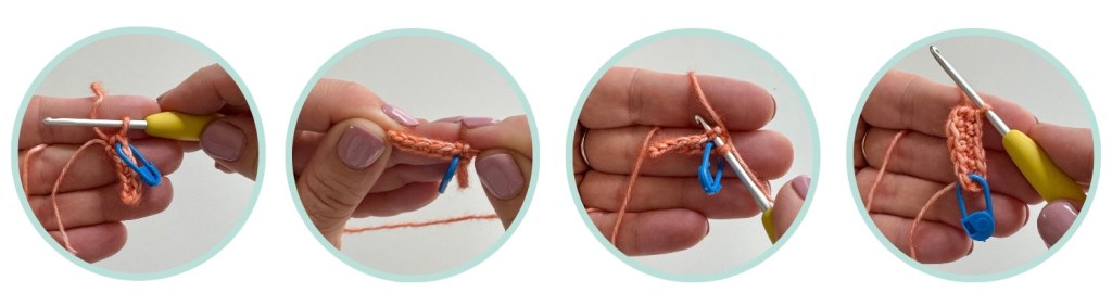 Sometimes you will start a pattern with a sc foundation row. When this happens, each side of the row will count as workable sts. Work through the back humps of the ch, to give a cleaner look when working Rnd 2. Place your marker in the last st of the Row. The 1st st in Rnd 2 will be the next workable st on the opposite side of the foundation row.