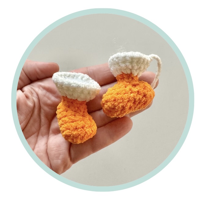 Sl st into the next st to FO and cut yarn. Weave your tail through FLO of the remaining 5 sts, pull to close and hide the ends inside of the feet. Stuff the feet lightly.