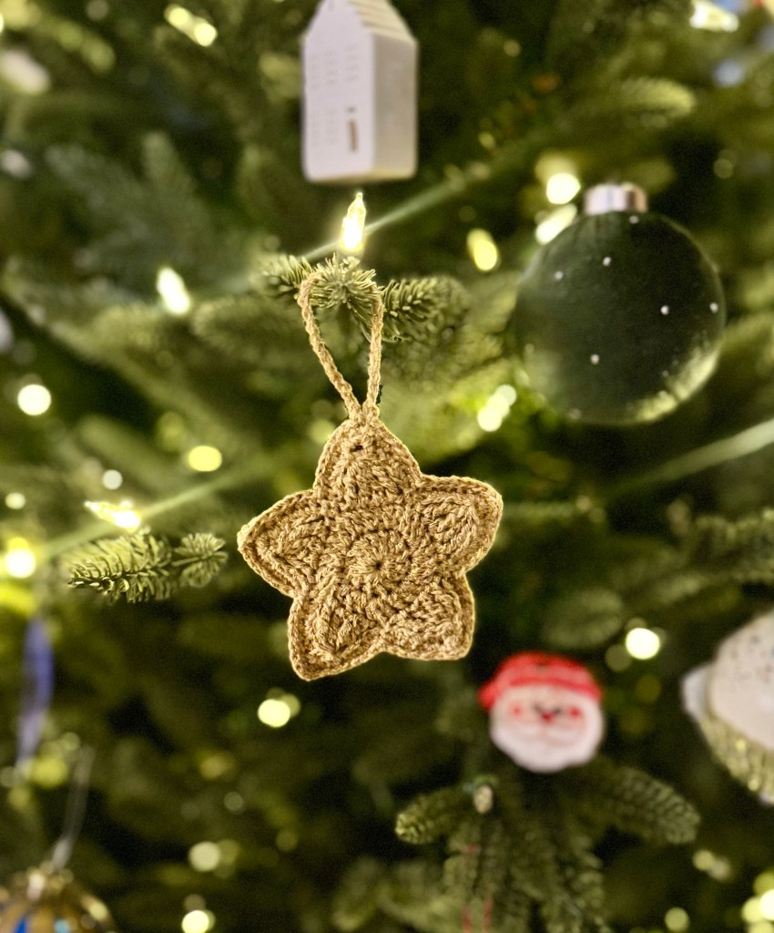 Scheepjes Twinkle was the perfect choice for this design. The subtle shimmer adds just enough magic without overpowering the stitches, letting the shape of the star really shine. It has that soft glow that catches the light in the loveliest way: simple, elegant, and a little bit special.