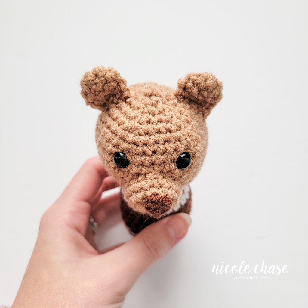 - All pieces, with the exception of the ears, require full stuffing. Stuff as you work to ensure each piece is completely filled.