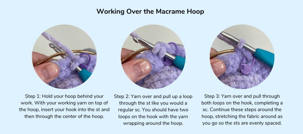 Note: If your hoop is peeking through your sts a lot, or if you feel your round 4 sts are too tight, you may need to increase in round 4 as follows: *sc 5, inc* x 6 (42). Add even more increases as needed, especially if using a larger hoop or finer yarn.
