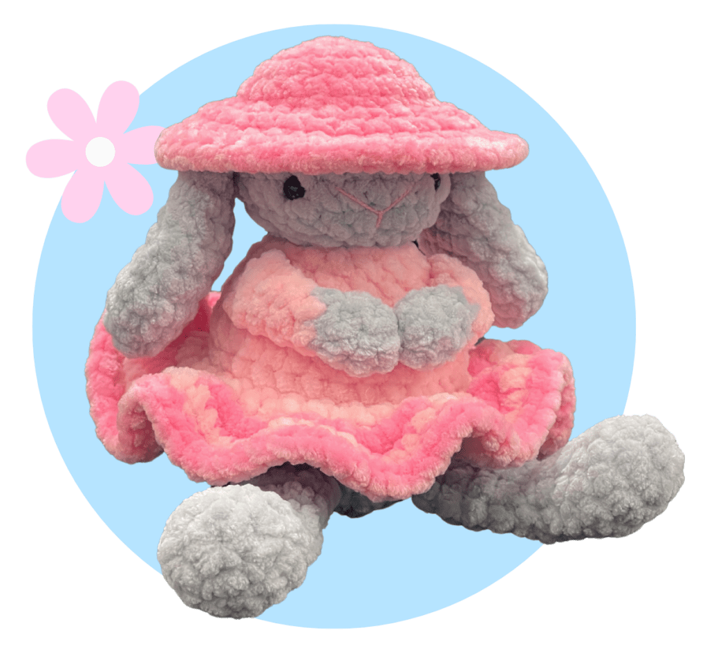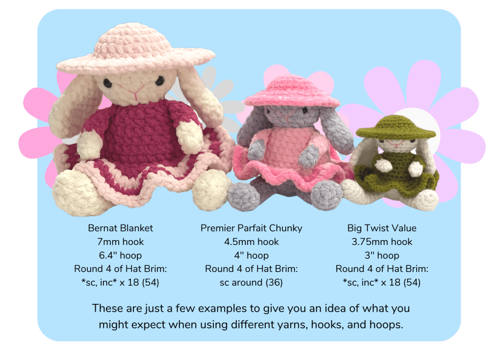 I am so excited for you to make your very own Garden Party Pal! I’ve listed some suggested materials below depending on your yarn preferences. I’ve included Premier Parfait Chunky (the yarn I used throughout the pattern), Bernat Blanket, and Big Twist Value, but you can use anything you’d like! Thank you for all of your support and have fun!! I can’t wait to see your bunnies!